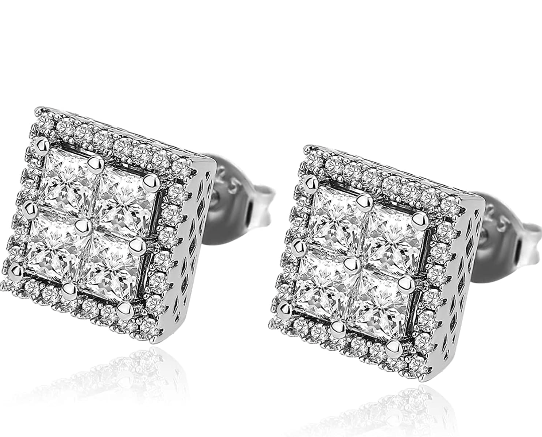Square Iced Out .925 Sterling Silver Earrings